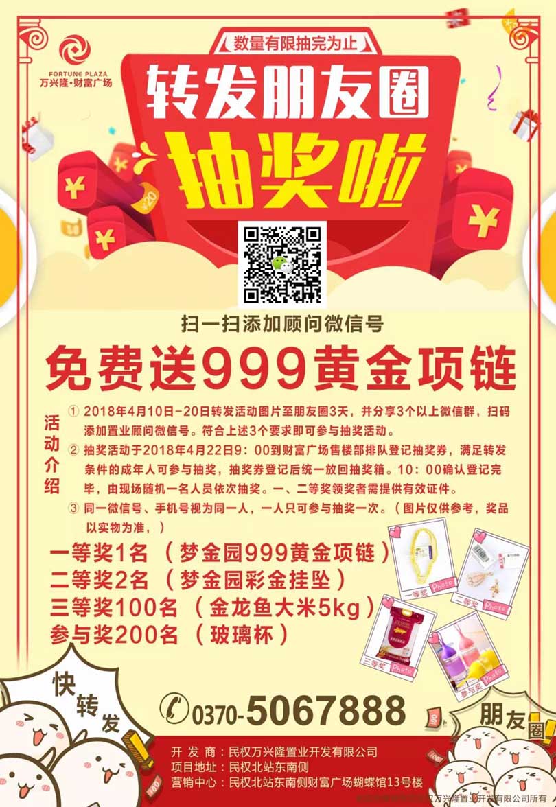 高铁站财富广场送您价值四千元的999黄金项链!