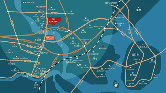 万兴隆·玖龙府占据厦漳新城桥头堡,门前的圣王大道将是进入漳州市区和厦门的又一条主要通道,地理位置十分优越。