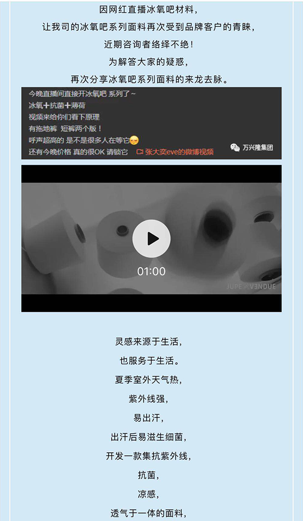 神助功--------网红直播使“冰氧吧”系列面料再受关注