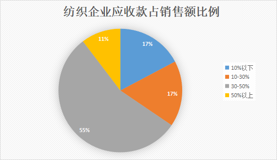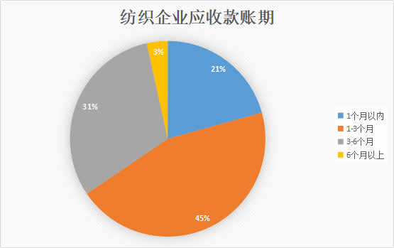 通常情况下,纺织应收款的账期并不算长。在走访调研中,仅有34%的企业表示自己的货款账期超过了3个月,而66%的纺织企业货款账期都控制在了3个月内,甚至有超过20%的企业账期不足一个月。