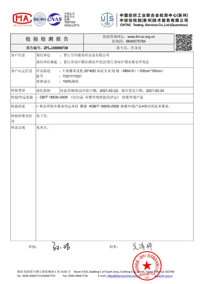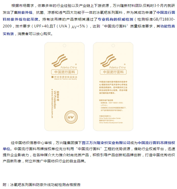 中国流行面料吊牌授权单位 | 万兴隆:以市场为导向 做功能型面料领航者