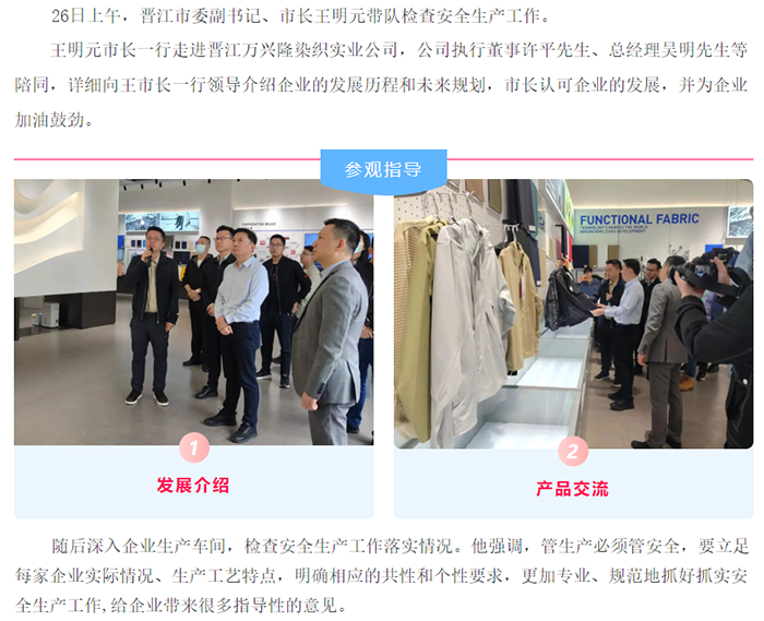 晋江市王市长一行莅临万兴隆交流指导并检查安全生产工作