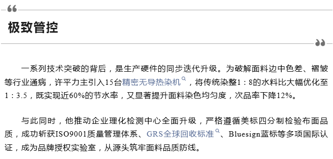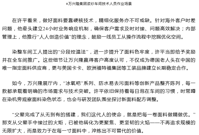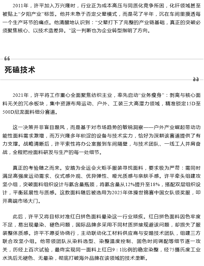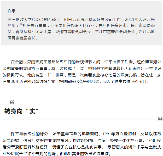 环球人物·大国纺织 | 万兴隆许平:金融海归的“面料较真法”